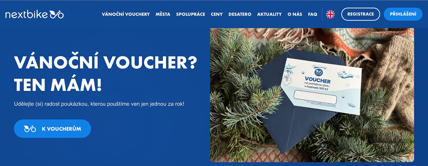 Partnerem i této epizody Urban Caastu je flotila sdílených kol Nextbike, která vám usnadní pohyb už po 25 městech po celé České republice. Stačí jedna aplikace v mobilu. A v novém e-shopu Nextbike pořídíte super dárek pro všechny, na kterých vám opravdu záleží. Jen nyní jsou v nabídce speciální vánoční vouchery na volné minuty. Pořídíte jednoduše, rychle, z mobilu i z počítače.